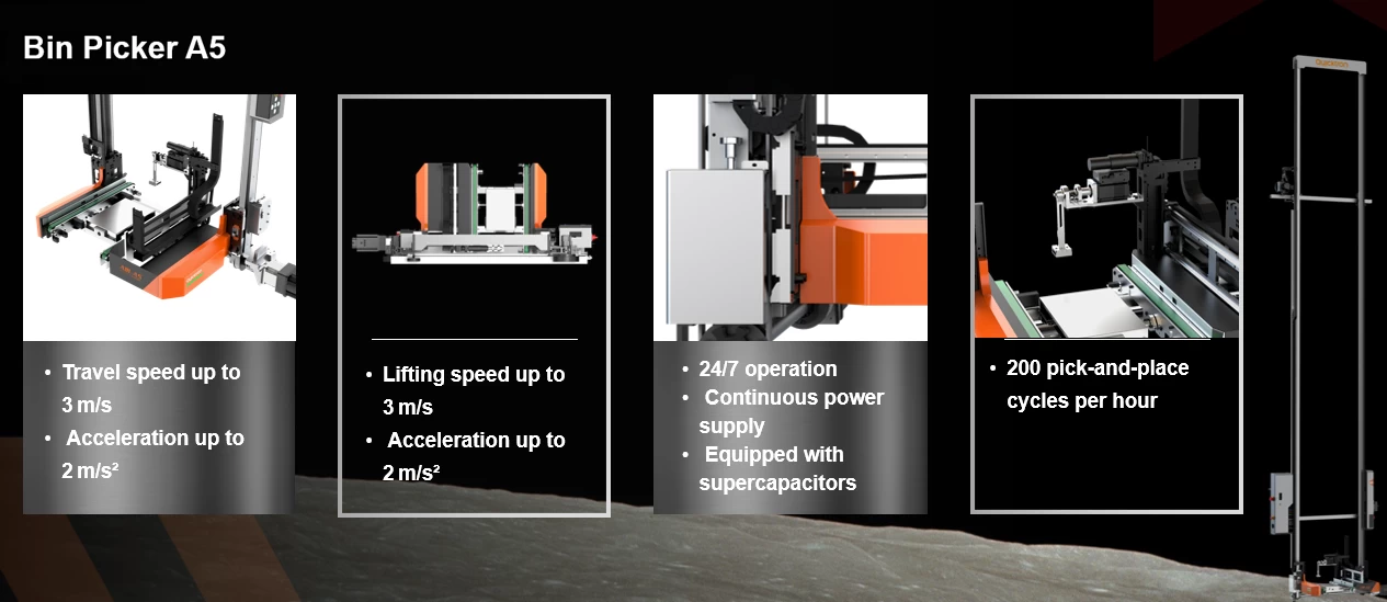 QuickBin Ultra is Quicktron’s flagship piece-picking solution designed for modern warehousing environments that demand ultra-efficient, scalable, and space-saving operations. Combining the capabilities of M5E mobile robots and the AirA5 intelligent lift system, this solution dramatically enhances order picking speed and storage density.