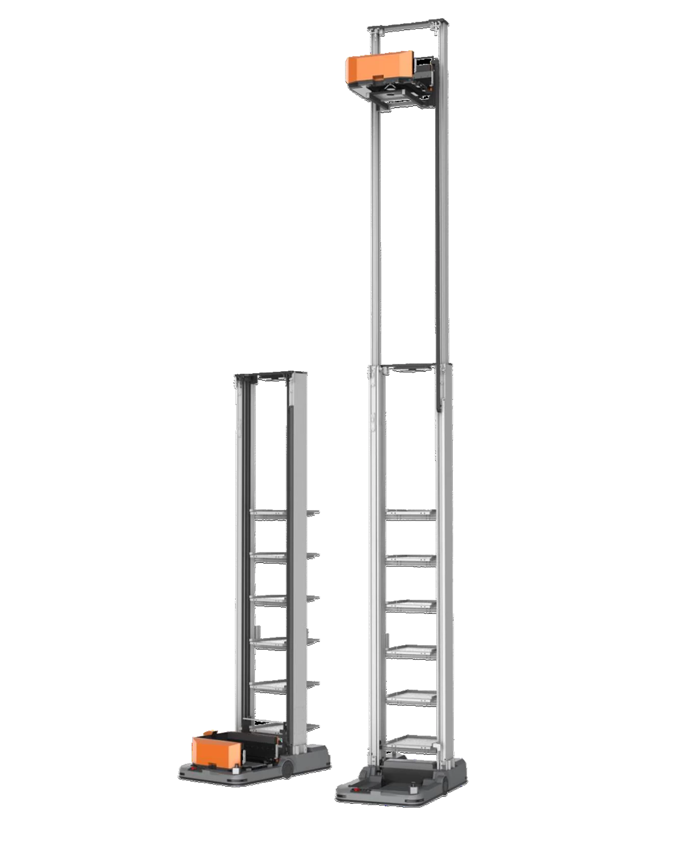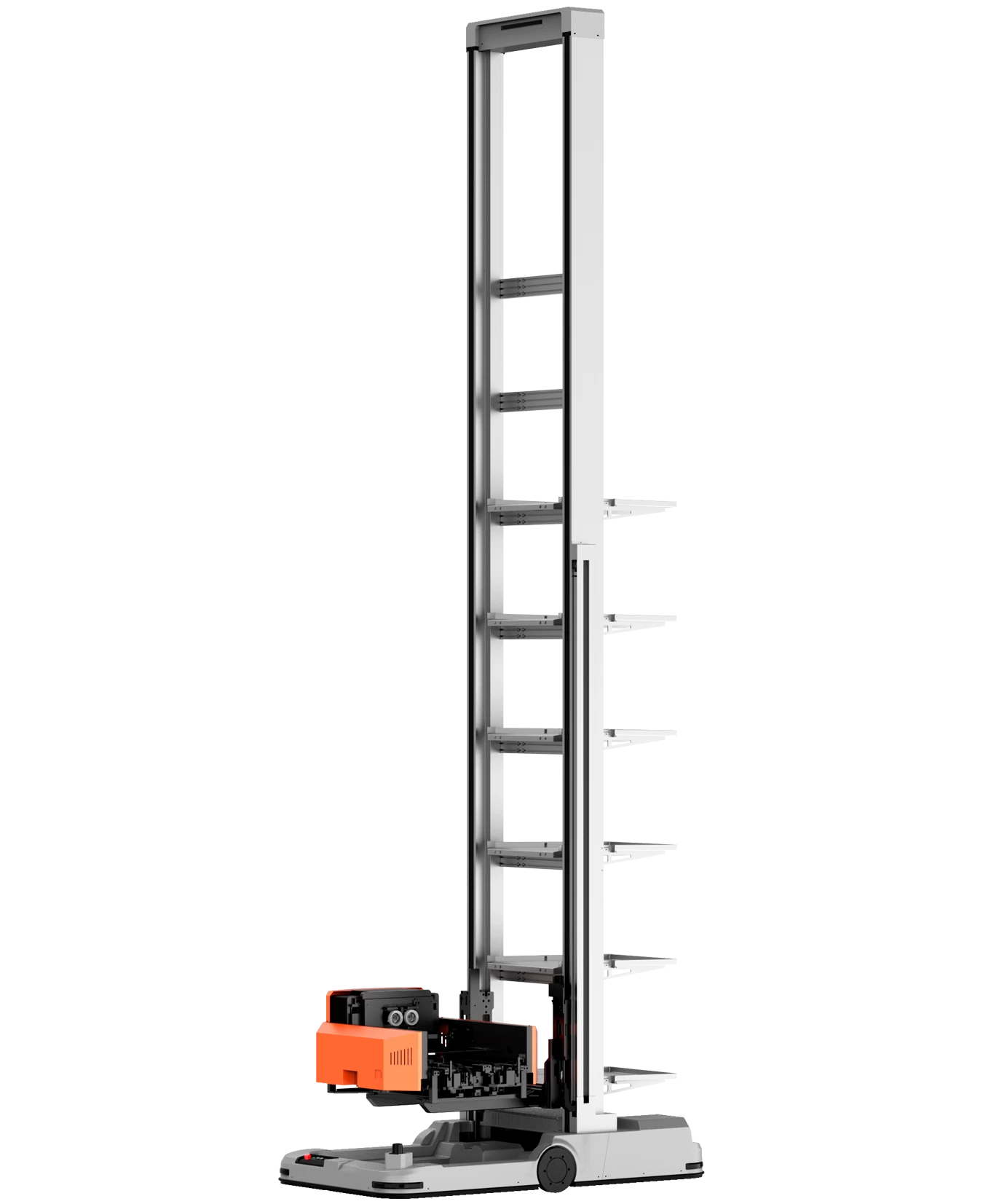 The C56A(C)-B series robot offers two mast modules: single-level and double-level. The single-level mast has a fixed height range, while the double-level mast can extend from a lower height to its maximum height and also retract from its maximum height to a lower position, enabling it to navigate through spaces with limited vertical clearance.