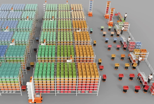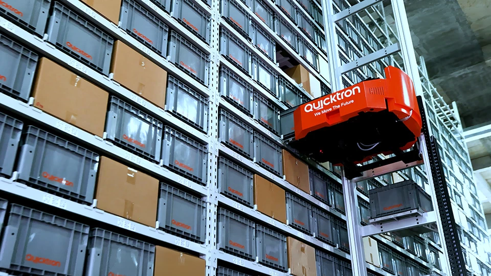 QuickBin™ is our patented bin-to-person picking solution that revolutionizes warehouse operations by leveraging automation through robotics and intelligent software. It enhances efficiency, reduces labor costs, and accelerates deliveries in distribution centers, fulfillment warehouses, and e-commerce hubs.