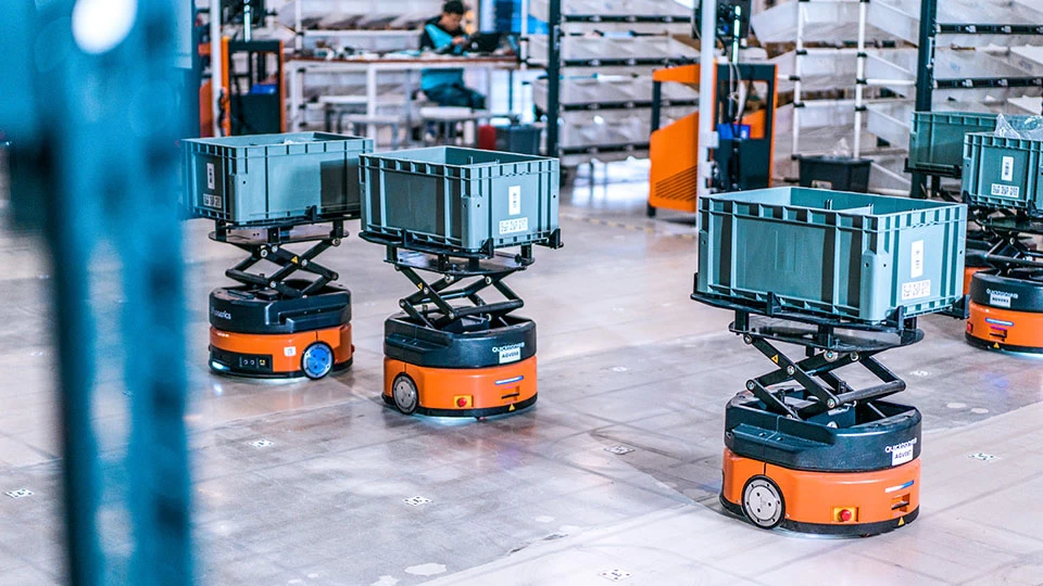 In QuickBin settings, these autonomous bots seamlessly transport goods between storage areas and workstations, saving valuable time and eliminating the need for workers to navigate the warehouse. Robots follow one another in 1-2 second intervals and make a queue in front of workstations, resulting in a dramatic reduction in travel time, minimizing inefficiencies and bottlenecks.