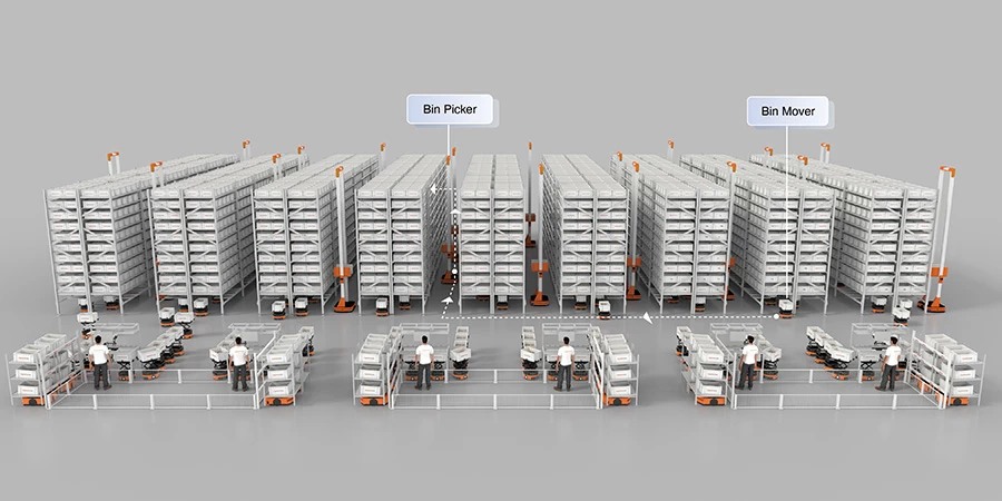 在这个综合模型中,快仓提供了一个集成系统,包括WES、WCS和RCS简化整个仓储操作。 在此模型中,客户的仓储系统提供向 WES 发出有关箱柜或机架内资源分配的指令,WCS 系统会遵循该指令为存储区域内的料箱和货架分配最佳位置和定位,同时 RCS 控制仓库内的所有机器人运动。