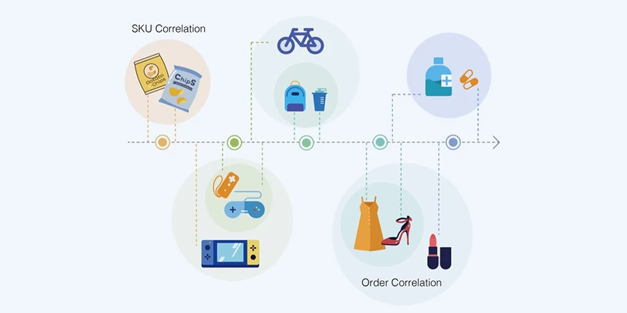 基于滚动的历史拣选数据,挖掘不同sku的拣选热度以及sku之间的关联度,基于此进行推荐上架,优化库存分布,既能减少热度商品货架的竞争状态,又能提高后续一次进站拣选效率。