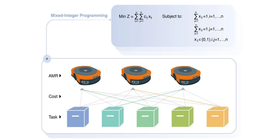 货架搬运任务分配AGV时不仅考虑全局的搬运距离,还考虑仓库区域、工作站、任务类型等要素的负载均衡;此外,通过感知作业中的AGV状态,进行动态任务分配及调整,减少AGV绕路和空闲间隔,提升整体作业效率。