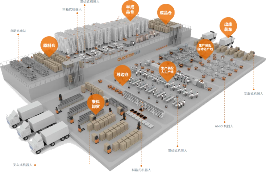 快仓的货到人(GTP)解决方案是一种先进的仓库自动化系统,它利用移动机器人(AMR)将产品直接交付给位于拣选站的操作员从而消除了不必要的移动专有算法以及 RCSWCS、WES 系统和 CE 认证的机器人确保了一流的性能和安全性。