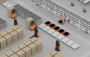 我们的智能移动解决方案是先进的点对点物料搬运技术。 机器人使用 QR 码、SLAM 或混合导航技术,确保货物在仓库或工厂车间内顺利移动。 点对点解决方案执行诸如传输和提升以及在不同应用设置中移动托盘、货物、零件和半成品等任务。